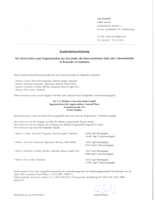 Zum Nachweis wurden die verwendeten Glasuren im Labor der Meißner Umwelttechnik GmbH getestet.